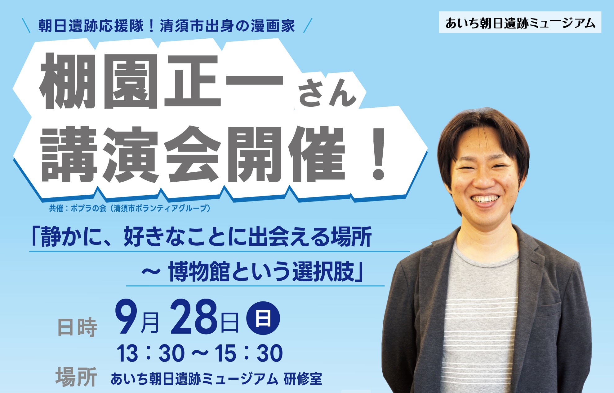 清須市出身の漫画家で、朝日遺跡応援隊でもある棚園正一さんの講演会を開催します。