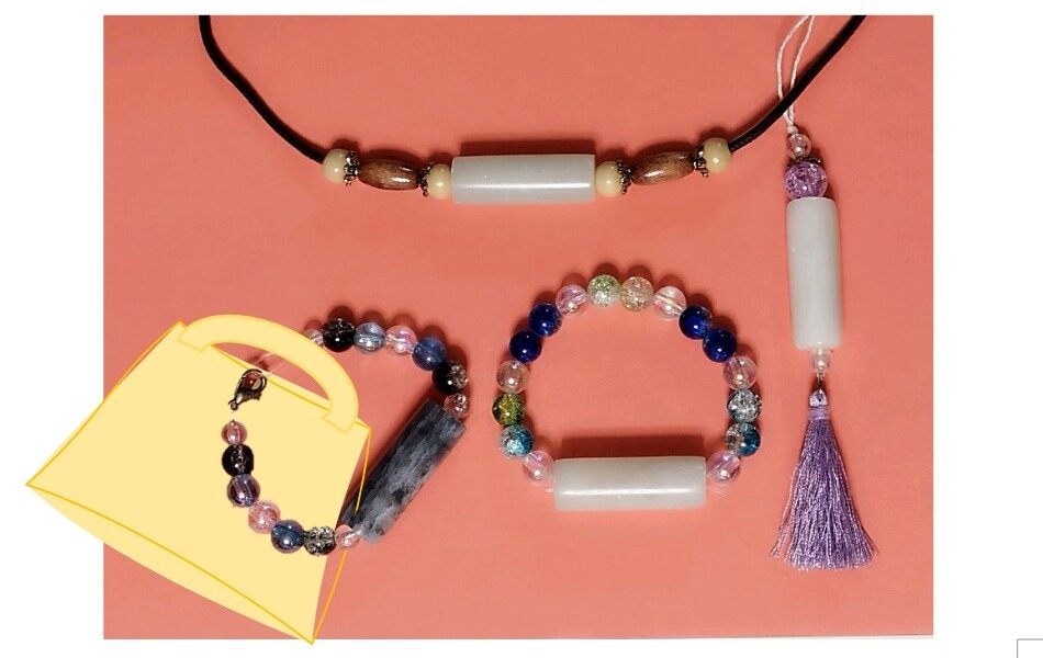 ネックレス・ブレスレット・ストラップ・チャームの4種類(各400円)