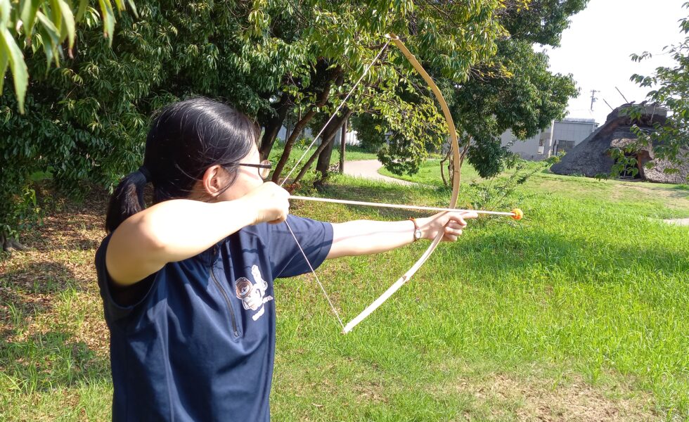 弓矢を使って、イノシシやシカなどのパネルをねらう体験ができます。