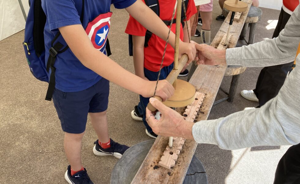 マイキリ式の火起こし機を使って火起こしを体験します。