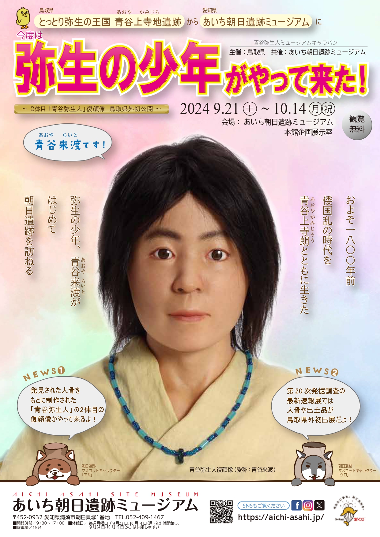 「青谷 来渡」は鳥取県外では初公開となりますので、この機会に是非あいち朝日遺跡ミュージアムに御来館ください。